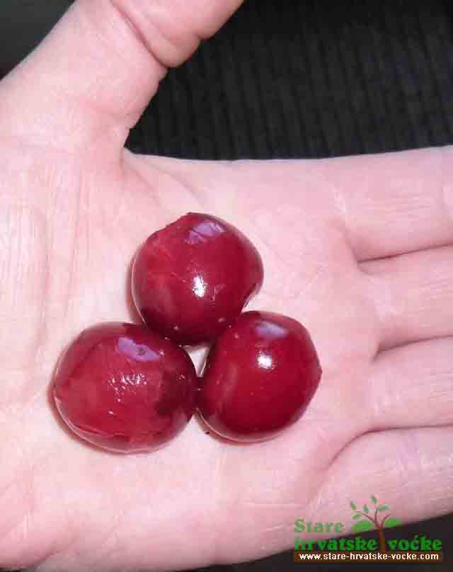 Tanmo crvena, težine 5 - 6 g, sjajne kožice, oblik je bubrežast. Dozrijeva sredinom 6 mjeseca.